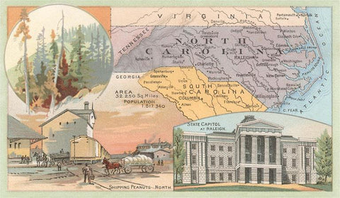 NC-390 Map of North Carolina - Vintage Image