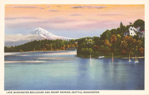 NW-31 Lake Washington Boulevard and Mt. Rainier, Washington - Vintage Image