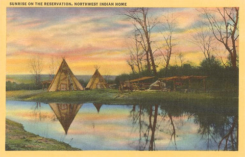 NW-55 Sunrise on the Reservation, Tepees - Vintage Image