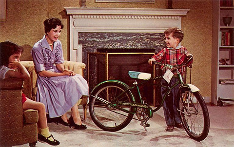 NP-271 Kid with Bike in Living Room - Vintage Image