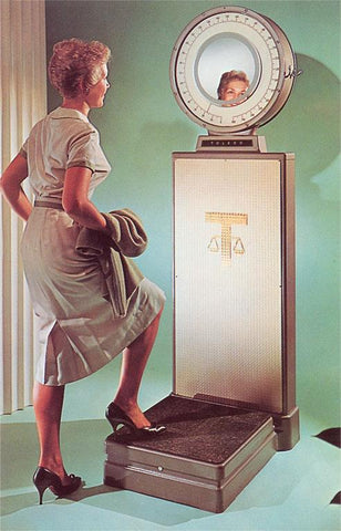 NP-296 Woman Mounting Commercial Scale - Vintage Image