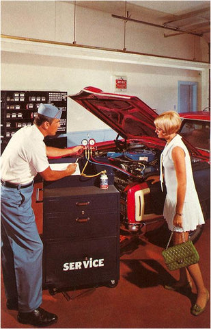 NP-325 Girl in Miniskirt at Garage, Retro - Vintage Image
