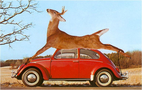 NP-430 Giant Deer Tied on Volkswagen - Vintage Image