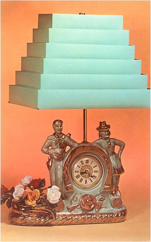NP-436 Clock and Lamp with Green Stepped Shade - Vintage Image