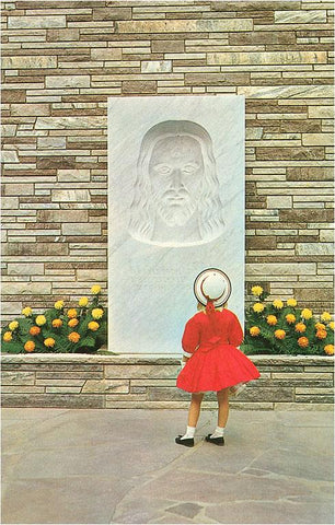 NP-480 Faux Stone Wall with Bas Relief of Jesus - Vintage Image
