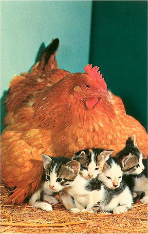NP-496 Hen Sitting on Kittens - Vintage Image