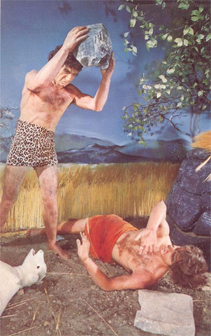 NP-682 Cavemen Fighting over Startled Lamb - Vintage Image
