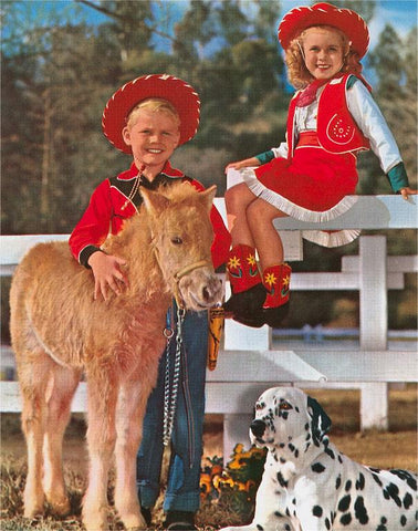 NP-771 Kids, Baby Horse and Dalmatian - Vintage Image