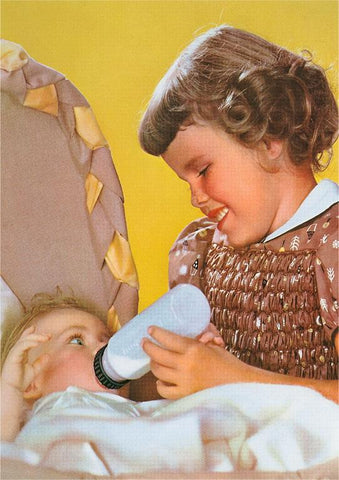 NP-780 Little Girl Feeding Baby Brother - Vintage Image
