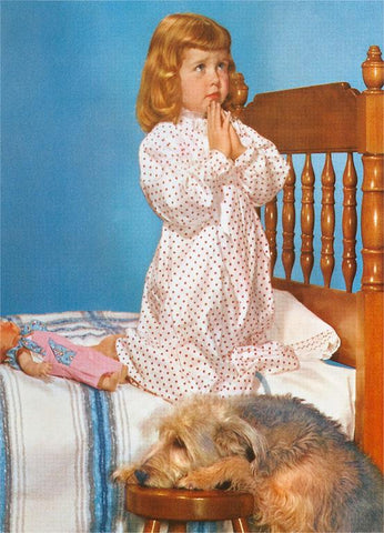 NP-781 Little Girl and Dog Praying - Vintage Image