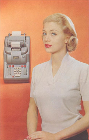 NP-1043 Blonde with Adding Machine - Vintage Image