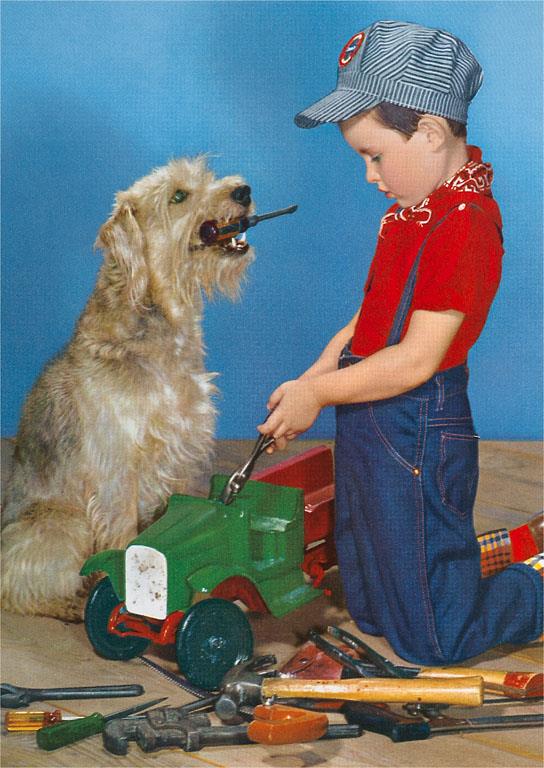 NP-772 Boy, Dog, and Tools - Vintage Image