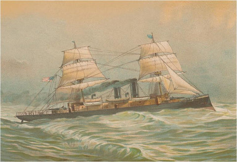 SS-43 Steamship with Square-Rigged Sails - Vintage Image