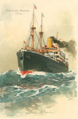SS-82 Steamship Hamburg-Amerika Crossing Ocean - Vintage Image