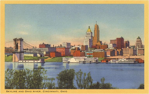 OH-48 Skyline and Ohio River, Cincinnati - Vintage Image