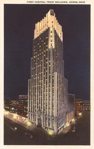 OH-93 Night, First Central Trust Building, Akron - Vintage Image