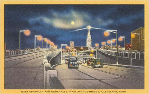 OH-134 Moon over Main Avenue Bridge, Cleveland - Vintage Image