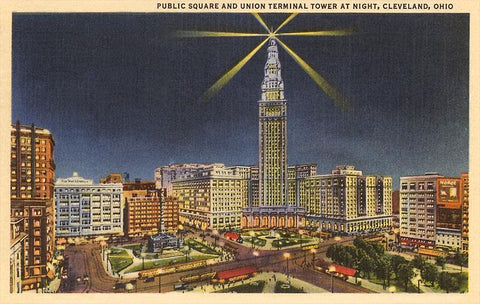 OH-145 Night, Union Terminal Tower, Cleveland - Vintage Image