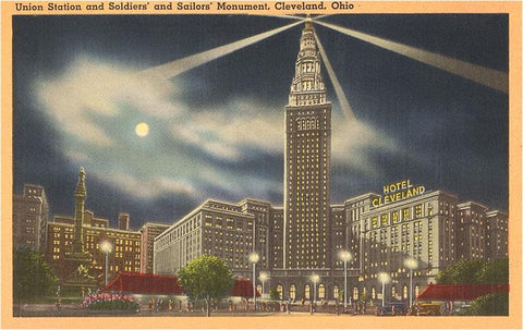 OH-197 Moon over Union Station, Cleveland - Vintage Image