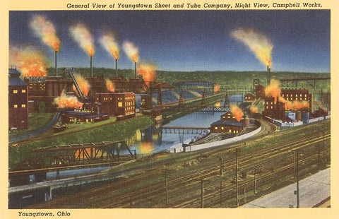OH-312 Night, Factories, Youngstown - Vintage Image