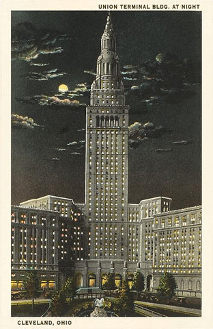 OH-368 Moon over Union Terminal, Cleveland - Vintage Image
