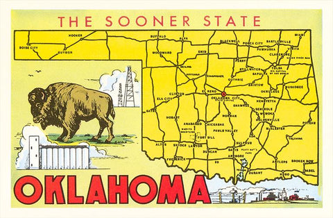 OK-70 The Sooner State, Map - Vintage Image