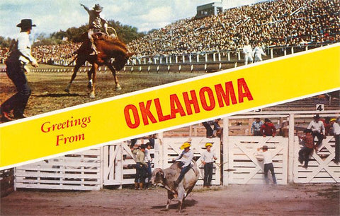 OK-87 Greetings from Oklahoma, Rodeo Views - Vintage Image