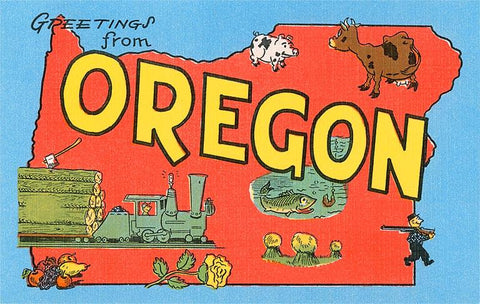 OR-407 Greetings from Oregon, Map - Vintage Image