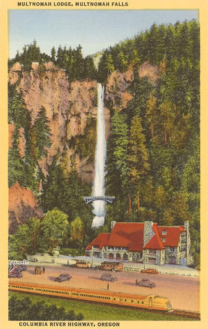OR-43 Multnomah Lodge and Falls - Vintage Image