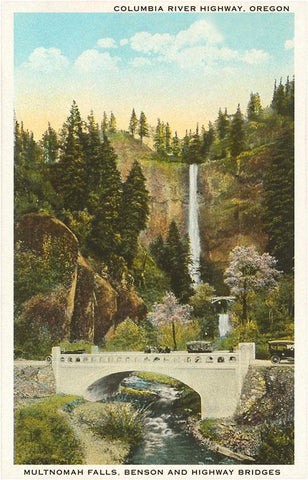 OR-115 Multnomah Falls, Columbia River - Vintage Image