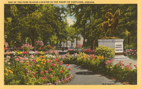 OR-121 Park with Flowers, Portland, - Vintage Image