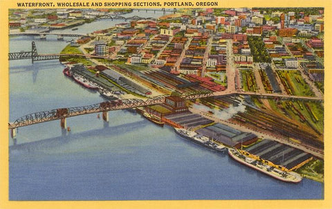 OR-127 Aerial View, Waterfront, Portland - Vintage Image