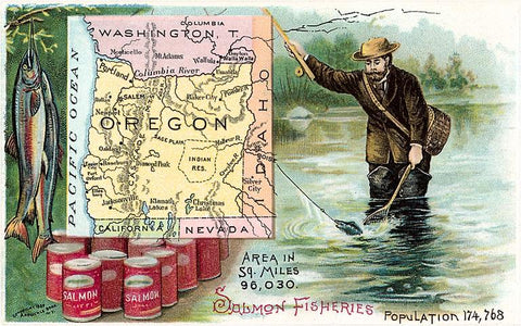 OR-452 Salmon Fisheries, Map - Vintage Image