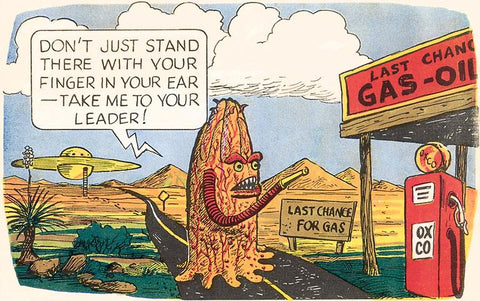 OS-42 Alien Confronts Gas Pump - Vintage Image