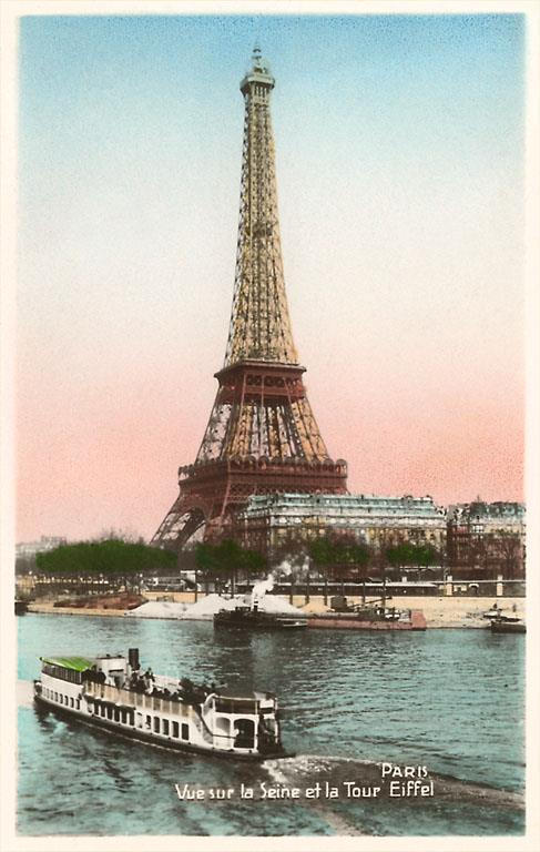 PS-66 Eiffel Tower and Seine - Vintage Image