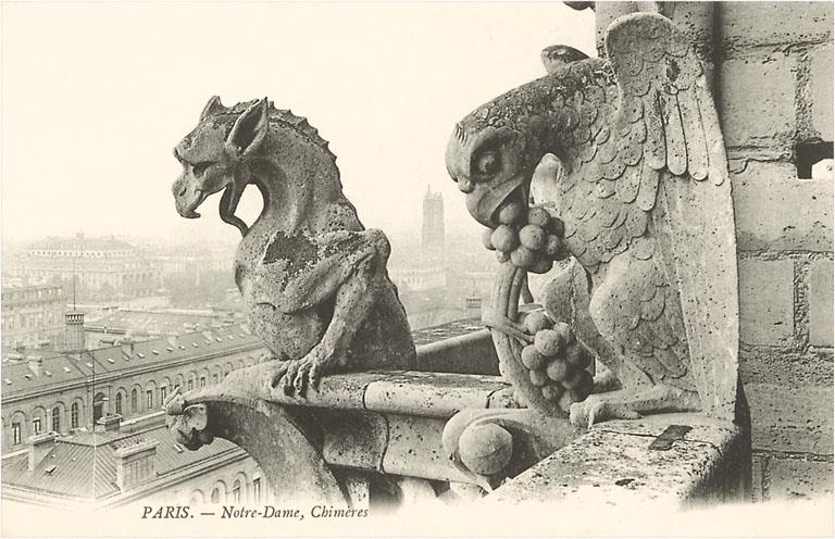 PS-93 Gargoyles at Notre Dame Cathedral - Vintage Image