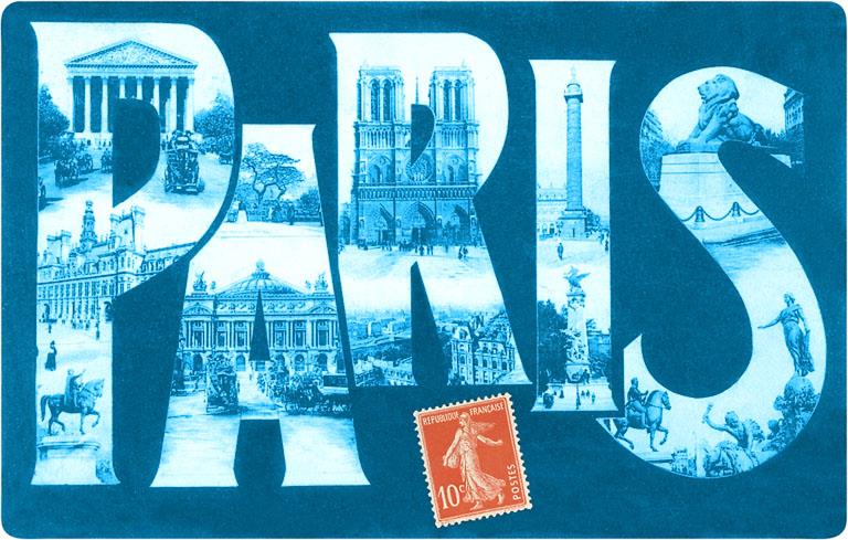 PS-97 Blue Paris Large Letter - Vintage Image