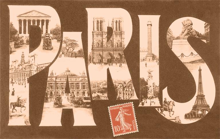 PS-96 Large Letter Paris Scenes - Vintage Image