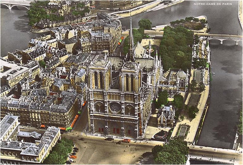 PS-105 Aerial View of Notre Dame Cathedral - Vintage Image