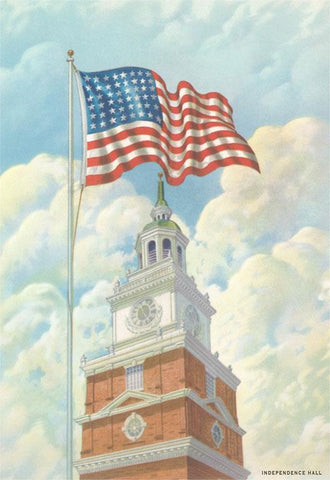 PT-169 Flag over Indepence Hall, Philadelphia, Pennsylvania - Vintage Image