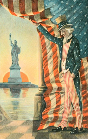 PT-178 Uncle Sam Viewing Statue of Liberty - Vintage Image