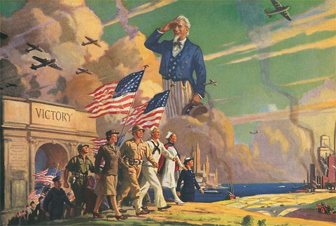PT-183 Uncle Sam Saluting Soldiers and Sailors - Vintage Image