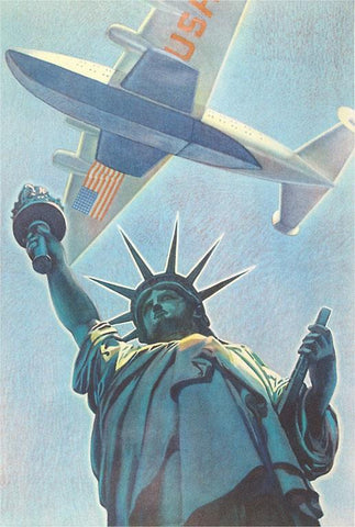 PT-204 Plane over Statue of Liberty - Vintage Image