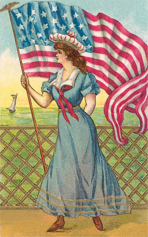 PT-244 Old Fashioned Belle with American Flag - Vintage Image