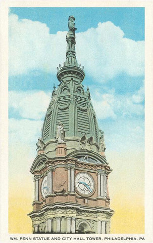 PA-91 William Penn Statue, City Hall, Philadelphia, Pennsylvania - Vintage Image