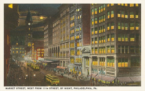 PA-99 Market Street by Night, Philadelphia, Pennsylvania - Vintage Image