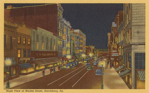 PA-190 Night, Market Street, Harrisburg, Pennsylvania - Vintage Image