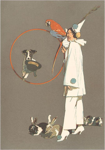 AP-180 Pierrot with Macaw and Rabbits - Vintage Image