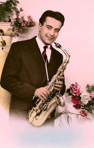 AP-306 Man with Saxophone and Roses - Vintage Image