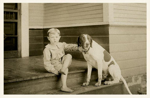 PZ-04 Boy on Porch with Dog - Vintage Image